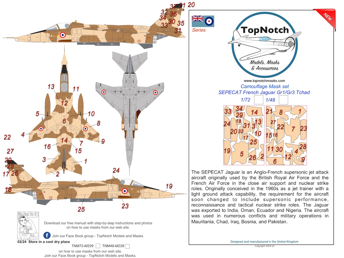 Top Notch - 1/48 French Sepecat Jaguar Gr.1/Gr.3 Tchad 2 for Airfix, Esci, Heller, Italeri and Kitty Hawk Model