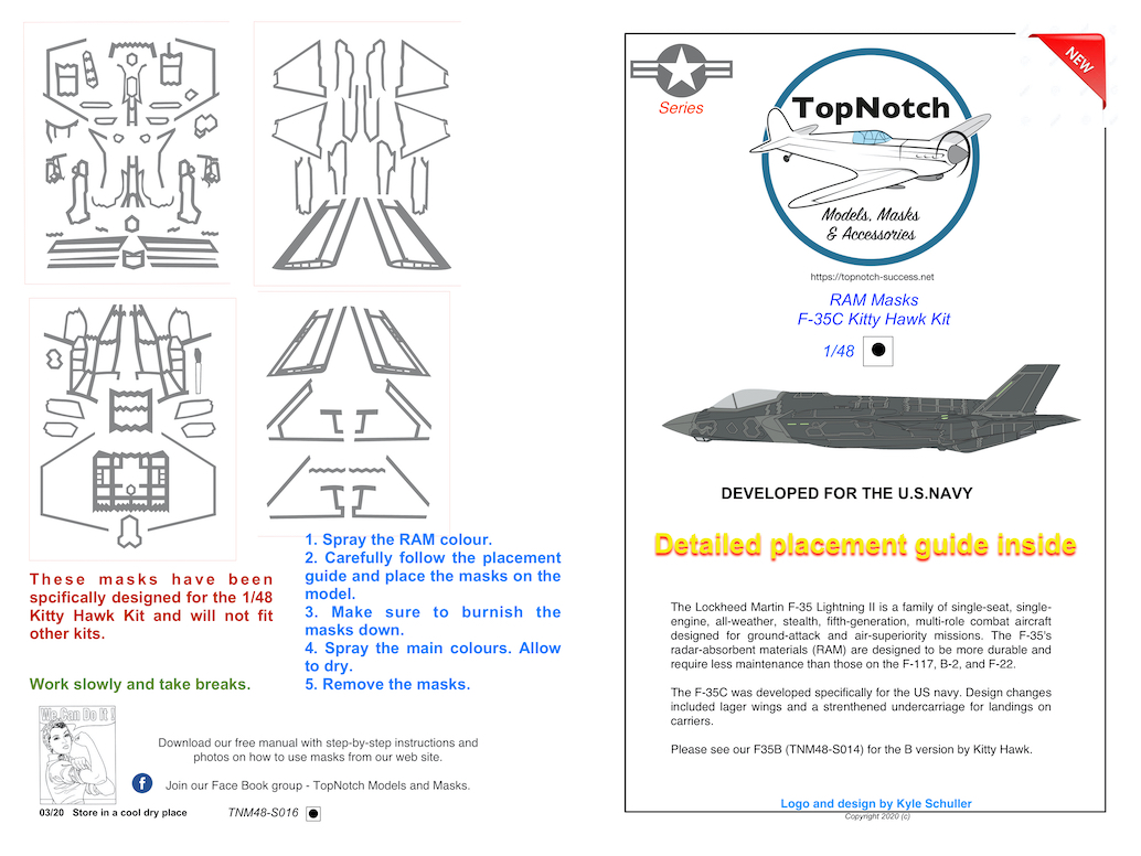 Top Notch - 1/48 Ram (Radar-absorbant masks) Masks Lockheed-Martin F-35C Lightning II. (for Kitty Hawk Model kits)