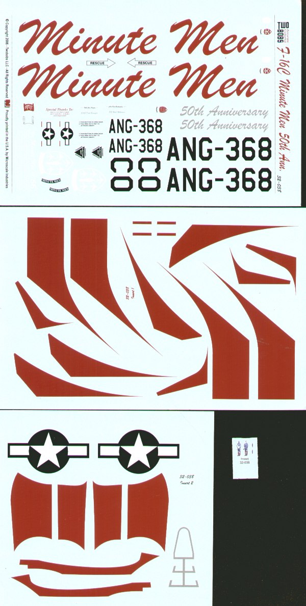 Two Bobs - 1/32 Lockheed-Martin F-16C Block 30 (1) Colorado Ang 50th Anniversary of the Minute Men Ang Demo Team. Special Red and Silver paint scheme. An F-16 with a difference