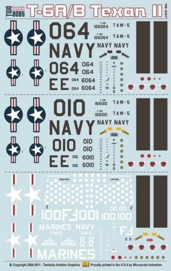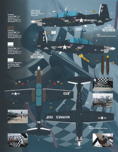 Two Bobs - 1/48 Beechcraft T-6A/Beechcraft T-6B Texan II (3) 166064 E/064 overall yellow 2011, 166010 E/010 white/orange 2009, both TAW-5NAS Whiting Field FL, 165966 F/100 TAW-5 Nas Pensacola overall gloss sea blue with white check nose. (for the Ibex kits)