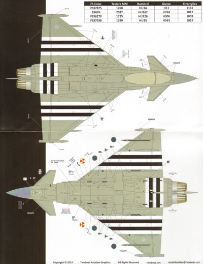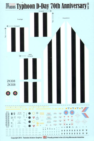 Two Bobs - 1/48 Eurofighter EF-2000A Typhoon. To commemorate the 70th Anniversary of the Normandy Invasion, the Royal Air Force adorned an aircraft from RAF Coningsby, Lincolnshire with D-Day invasion stripes in 2014. This aircraft is making its way through the European airshow circuit and pays homage to the crews of the WWII era Hawker Typhoon.