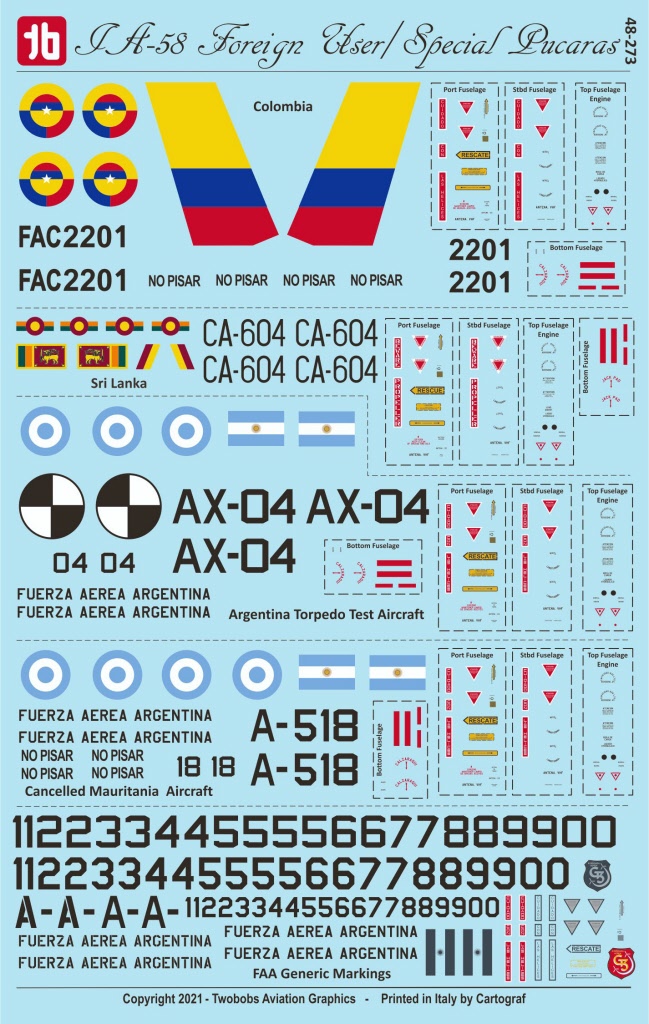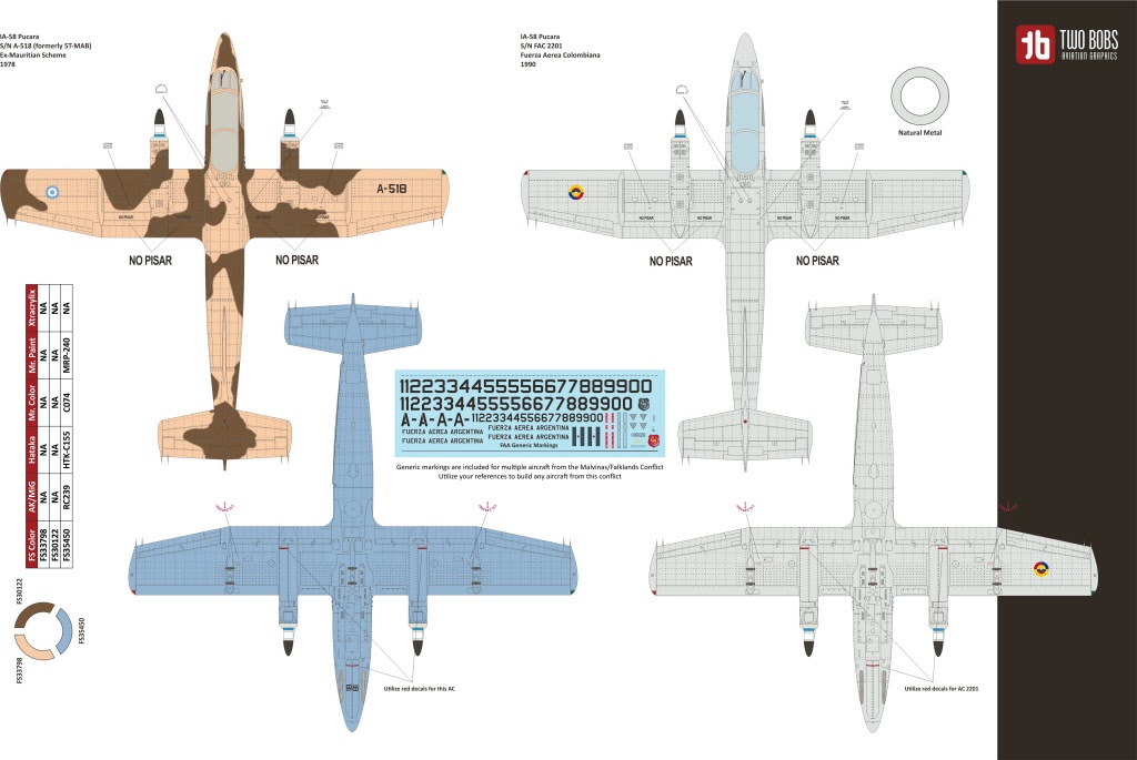 We have also included generic markings for the Faa to be used to model most of the South Atlantic Conflict as well as more current versions of the Pucara in Argentine Service.