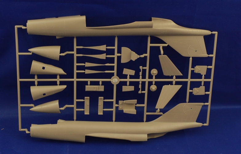 The kit includes three sprues with main parts and details, one sprue with clear parts, resin (PUR) parts and a fret with p/e parts.