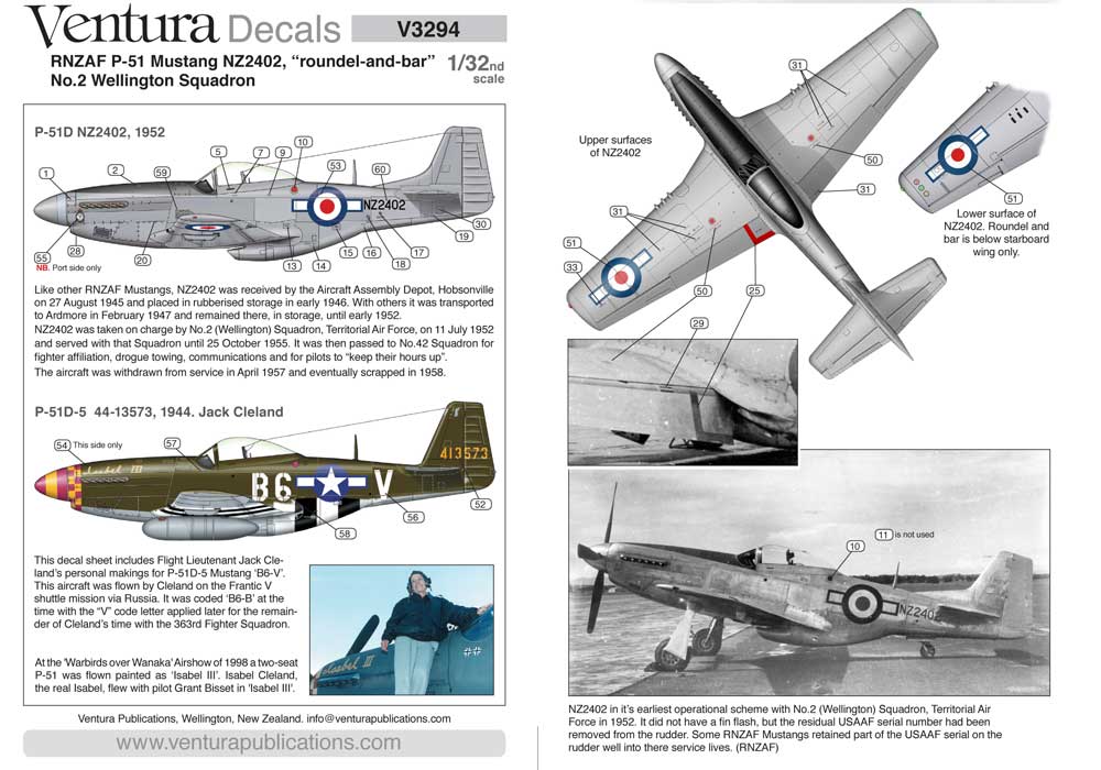 Ventura - 1/32 Rnzaf Mustang, No.2 Wellington Sqn. NZ2402, 1952 'roundel-and-bar' Plus Jack Clelland's Usaaf 'Isabel III'.