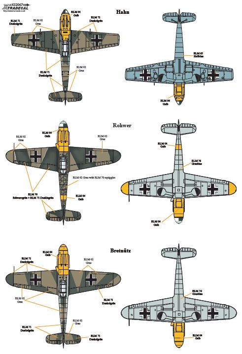 Bf-109F-2 I/JG3 Tech Offizer Hptm Detlev Rohwer Ukraine 1941 Yellow nose/fuselage band, includes correction for spinner stripes,