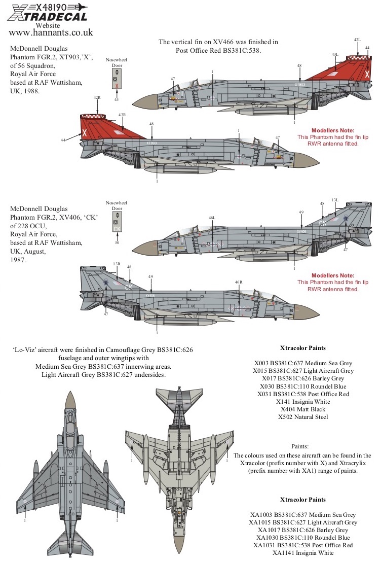 Xtradecal - 1/48 McDonnell Douglas Phantom FGR.2 (10) in late grey camouflage