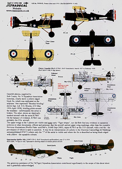 Xtradecal - 1/72 RAF 74 (Tiger) Sqn 1918 to 1992