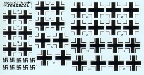 Xtradecal - 1/72 Battle of Britain 70th Anniversary 2010 Luftwaffe (11) Messerschmitt Bf 109E-3/Bf 109E-4 Yellow 11 9./JG 26 Fw Artur Beese Aug 1940, Yellow 1 6./JG 51 Oblt Josef (Pips) Priller Staffelkapitan Oct 1940, Yellow M 6(Schlact)/LG 2 Fw Erhardt Pankratz Oct 1940, White chevron 1./JG 27 Oblt Gunther Bodo Gruppenadjutant Sept 1940, Black 8 2./JG 3 Ofw Bernhard Lempskemper 2//JG 3 Aug 1940. All yellow nose/rudder, Yellow 15 3./JG 52 Uffz Karl Wolff Aug 1940 White nose/rudder, Junkers Ju 87B-1 6G+AT 6./St.G 1 Summer 1940, Messerschmitt Bf 110C 3U+AA ZG 76 Oberslt Huth, Kommodore Sept 1940, Dornier Do 17Z-1 F1+FH 1./KG 76 Sept 1940, Junkers Ju 88A-1 3Z+BB Stab.1/KG 77 1940, Heinkel He 111H-2 9./KG 53 A1+BT Sept 1940, 2 decal sheets