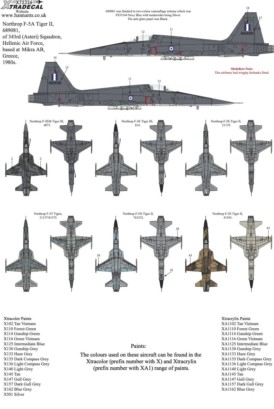 Xtradecal - 1/72 Northrop F-5 Tiger II Worldwide Collection Pt2 (17)