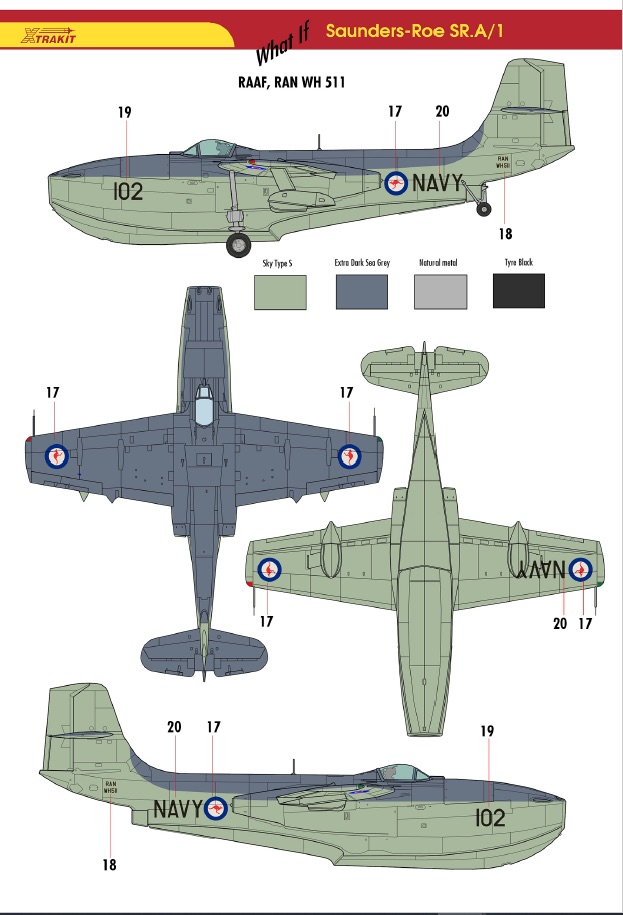 the worlds first jet powered flying boat with decals for 3 'What-if ' Korean War era paint schemes.
