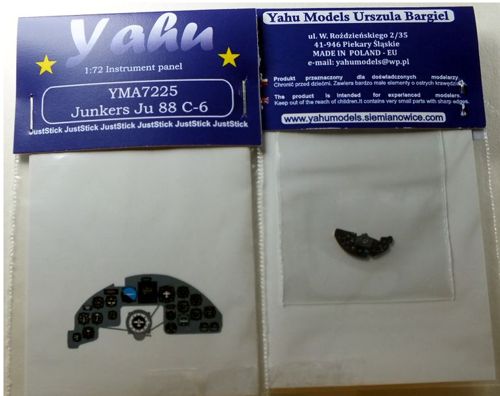 Yahu Models - 1/72 Junkers Ju 88C-6 high quality, colour printed, etched cockpit instrument panel (designed to be used with Revell kits) pre-assembled version